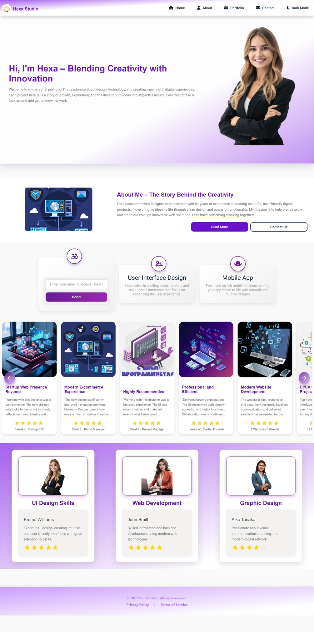 Sempurna untuk freelancer, developer, desainer, atau siapa pun yang ingin menampilkan hasil karya mereka secara modern dan berkelas.